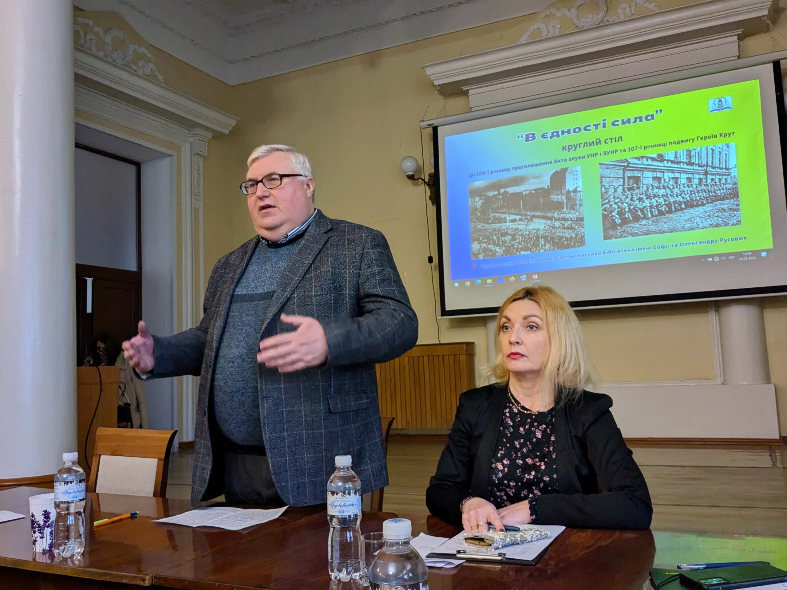 21 січня 2025 року в Чернігівській обласній науковій бібліотеці ім. Софії та Олександра Русових відбувся круглий стіл “В єдності сила”, присвячений 106-й річниці проголошення Акту Злуки УНР і ЗУНР та 107-й річниці подвигу Героїв Крут.
