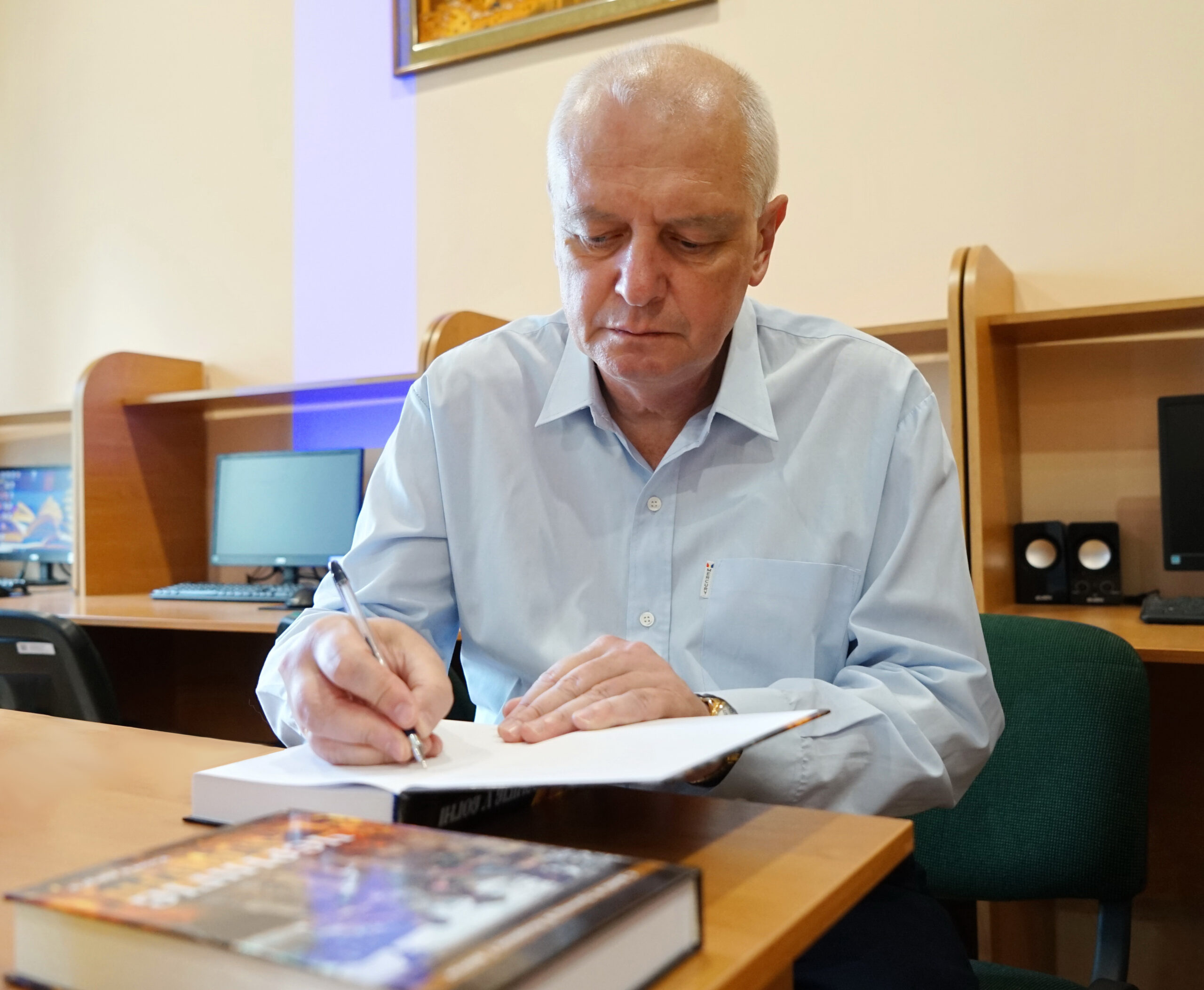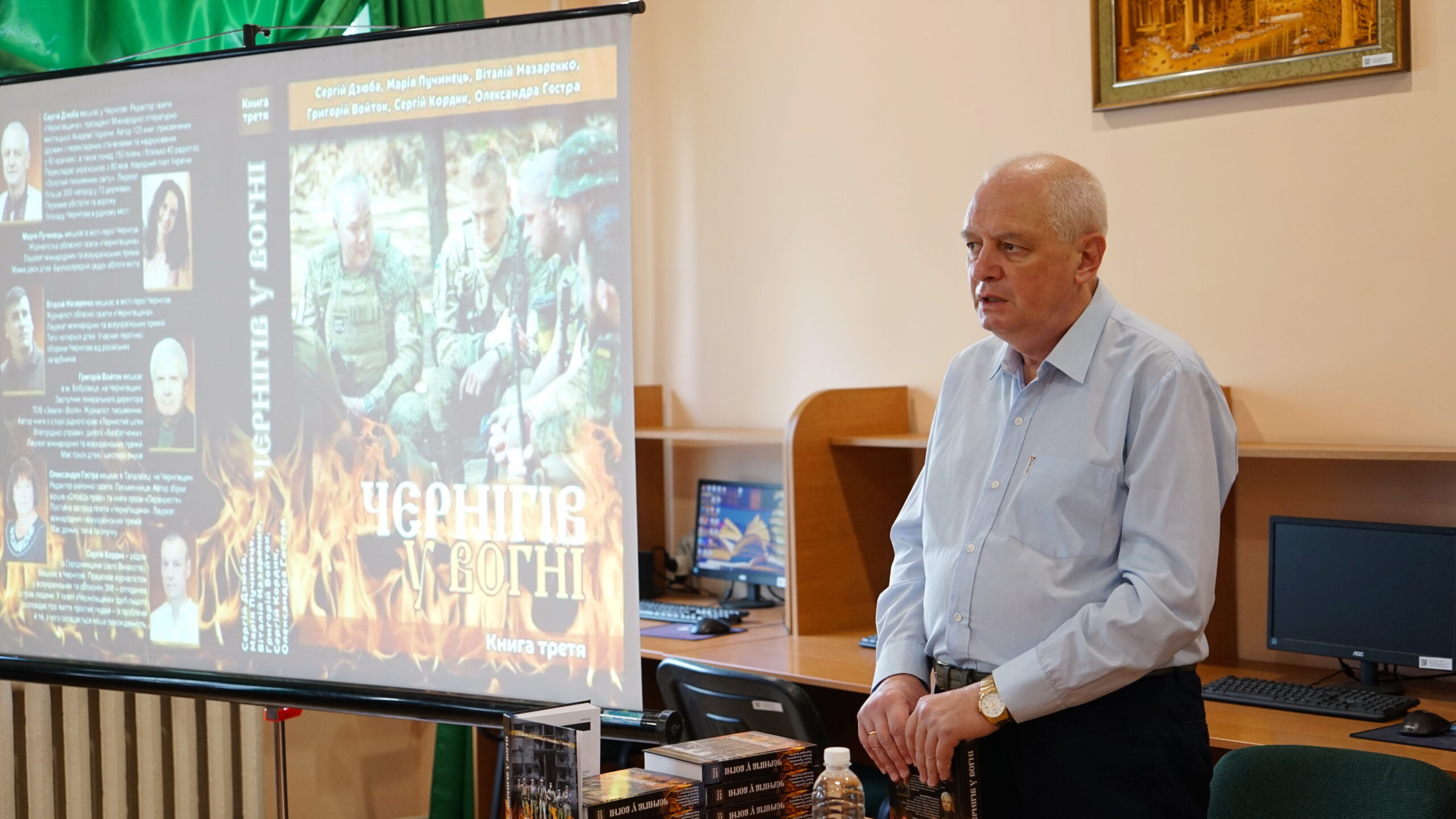 «Чернігів у вогні». Це продовження першої та другої книг, які набули великого резонансу в суспільстві, перевидавалися і були визнані «Кращою книгою року». В бесіді з письменником наша молодь дізналась про пережиту автором та містянами Чернігова облогу в 2022 році та познайомились з героями книги: захисниками Чернігова, які тепер воюють на інших ділянках фронту; медиками, які під безперервним вогнем рятували життя чернігівців і бійців; волонтерами, які, ризикуючи власним життям, доставляли в місто медикаменти і харчі, вивозили змучених блокадою містян.