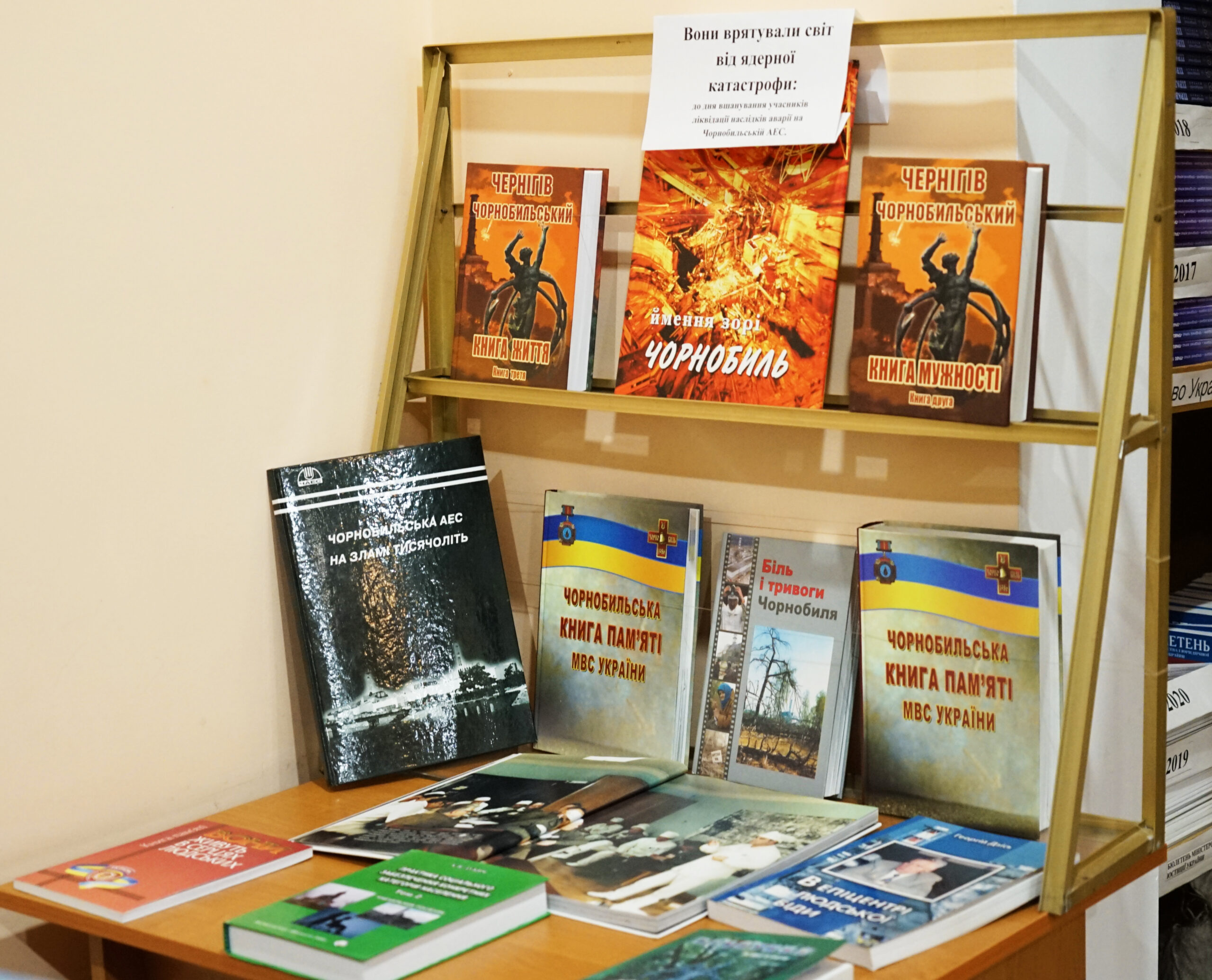 Виставка ознайомить відвідувачів з книгами, документальними матеріалами та свідченнями очевидців, що висвітлюють події квітня 1986 року, роль ліквідаторів аварії та вплив катастрофи на Україну і світ. Це нагода згадати подвиг мужніх людей, які ціною власного здоров’я та життя захистили світ від наслідків однієї з найстрашніших техногенних аварій, вшанувати їх пам’ять та внесок у майбутнє людства.