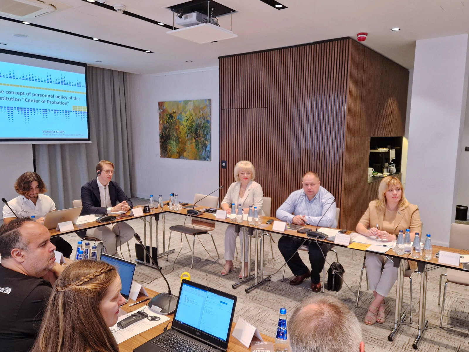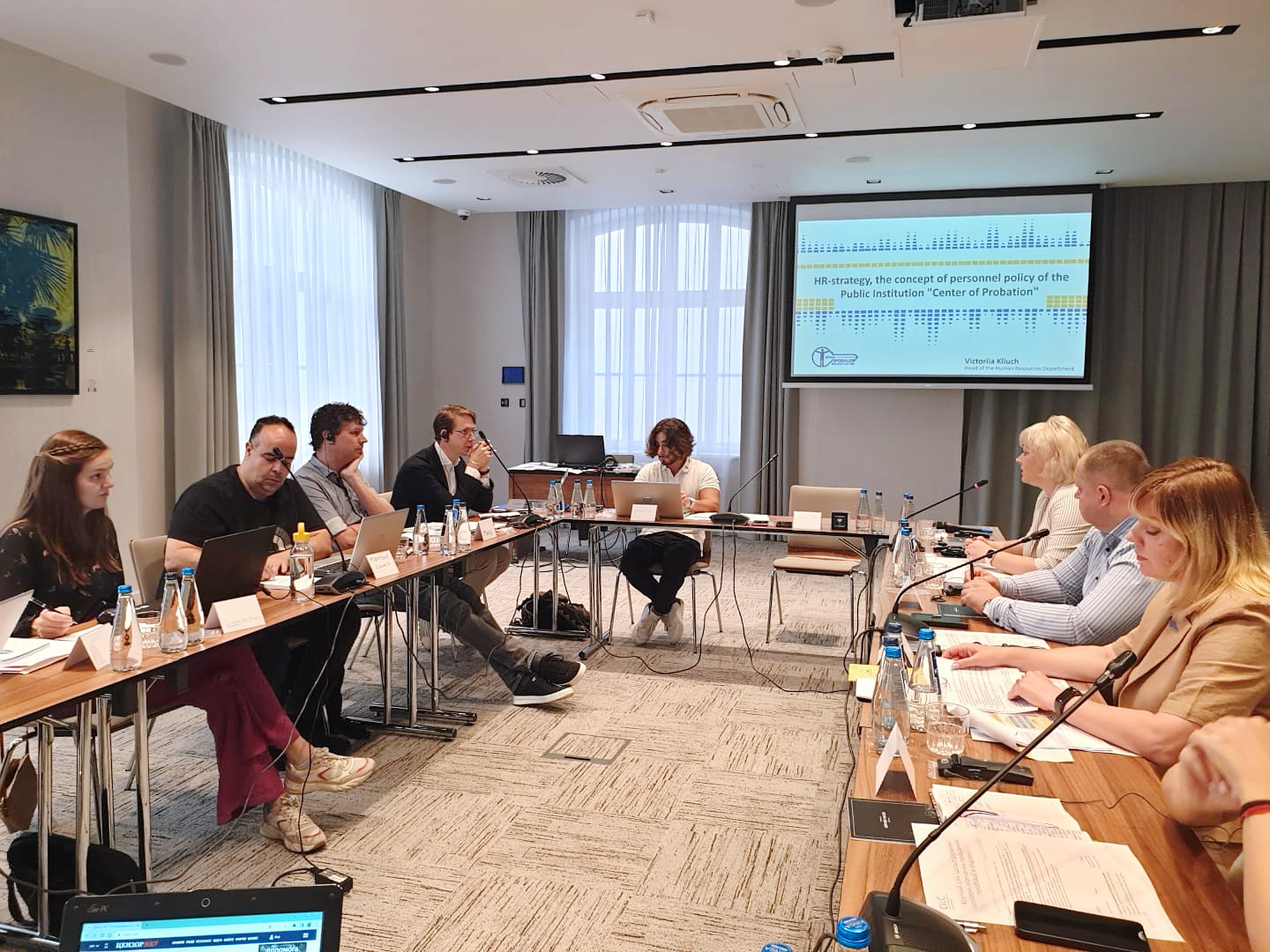 Від української сторони взяли участь: Олена Суботенко – заступниця директора Державної установи «Центр пробації»; Вікторія Ключ – начальниця відділу по роботі з персоналом Державної установи «Центр пробації»; Маргарита Поцелуйко – начальниця сектору взаємодії з міжнародними партнерами Державної установи «Центр пробації»; Наталія Верещінська – експертка Центру суддівських студій; Андрій Алєксєєв – експерт Центру суддівських студій. Від Пенітенціарної академії України в роботі круглого столу брав участь Володимир Пармінський – заступник директора Інституту професійного розвитку, який під час заходу презентував діяльність Інституту професійного розвитку ПАУ.