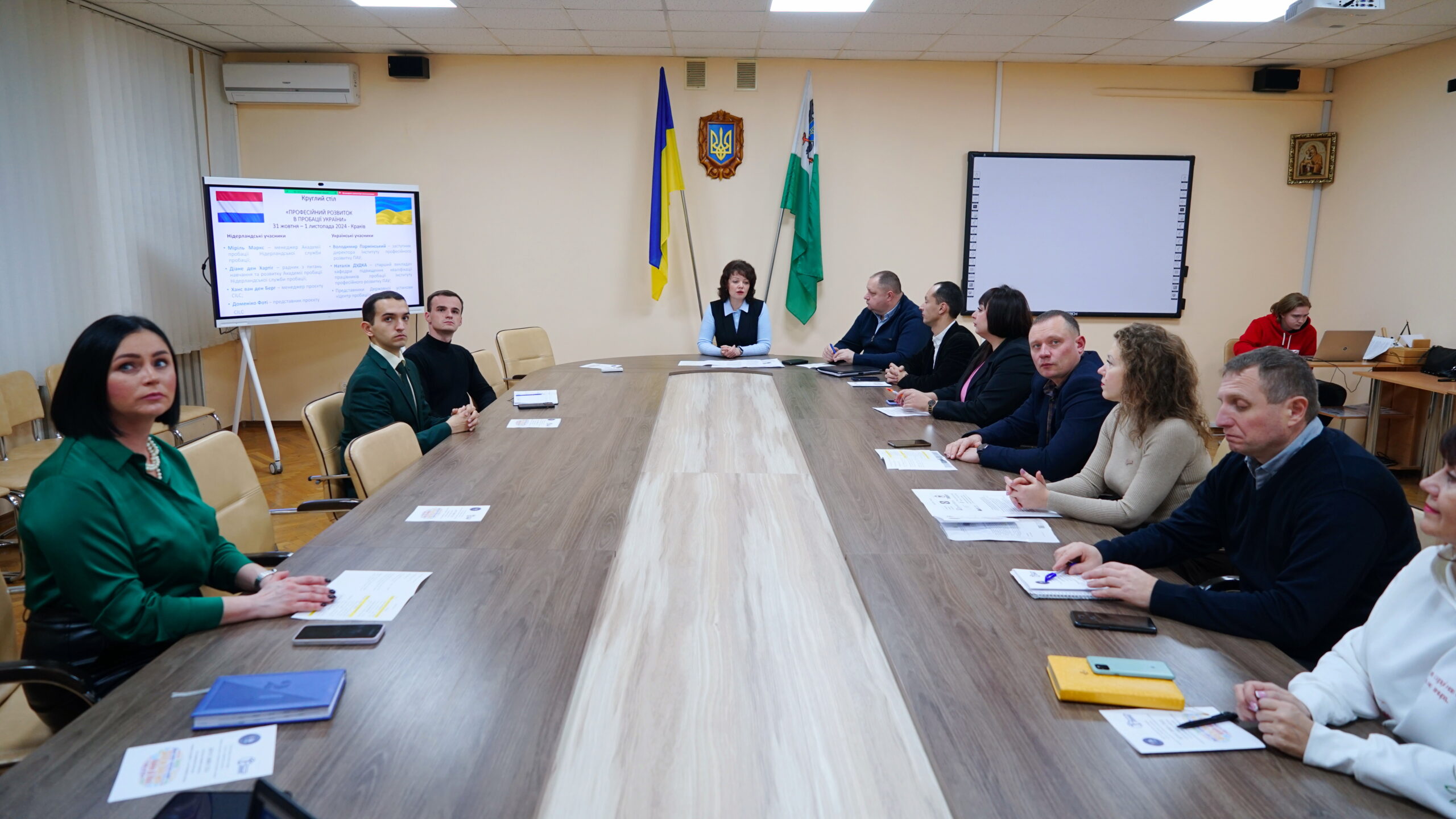 Володимир ПАРМІНСЬКИЙ, заступник директора Інституту професійного розвитку ПАУ і Наталія ДУДКА, старший викладач кафедри підвищення кваліфікації працівників пробації Інституту професійного розвитку ПАУ, які 11 – 12 вересня та 31 жовтня – 1 листопада взяли участь у роботі круглого столу в м. Кракові (Республіка Польща), поділилися знаннями щодо відбору та професійної підготовки працівників Служби пробації Нідерландів, які проводять регулярні навчальні сесії для підвищення компетенцій співробітників пробації.