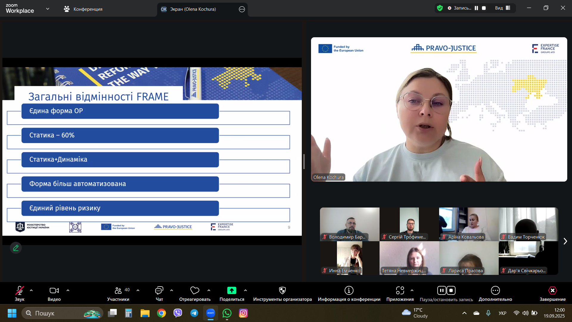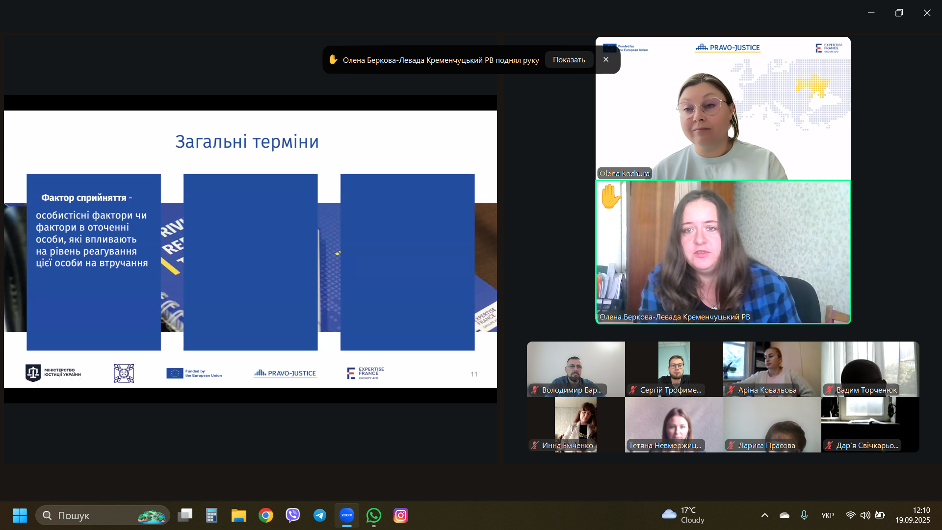 Крім цього, пані Кочура висвітлила генезис методики ОР, класифікувала динамічні та статичні фактори рецидиву, проілюструвала практичні аспекти заповнення майбутньої уніфікованої її форми на конкретних прикладах і надала рекомендації щодо організації соціально-виховної та психологічної роботи із суб’єктами пробації.