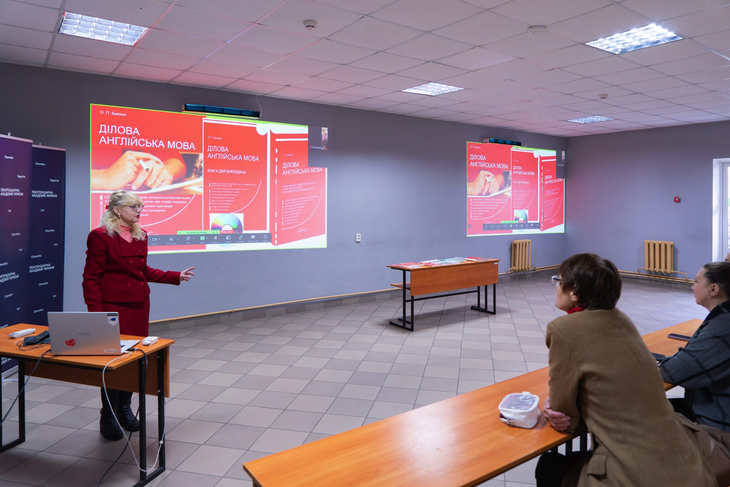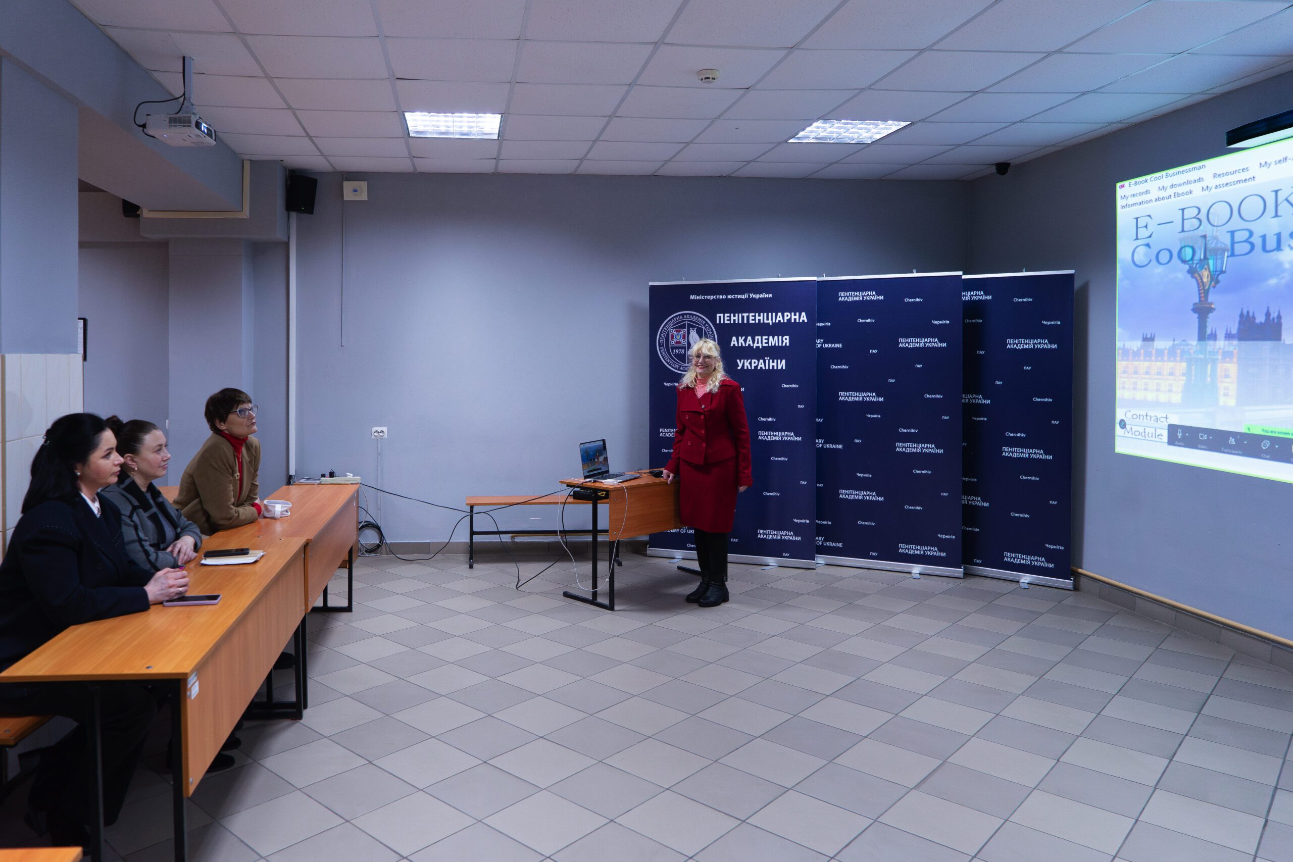 Учасникам презентовано авторські методики, мультимедійні посібники (Business English; Cool Businessman; General English) та інтерактивні матеріали, зокрема навчальний курс Selfstudy English на сайті Пенітенціарної академії України. Особливу увагу приділено сучасним мобільним застосункам для інтерактивного навчання, таким як Beelinguapp, HelloTalk, Promova та Xeropan, а також використанню штучного інтелекту для персоналізованого навчання та миттєвого зворотного зв’язку.