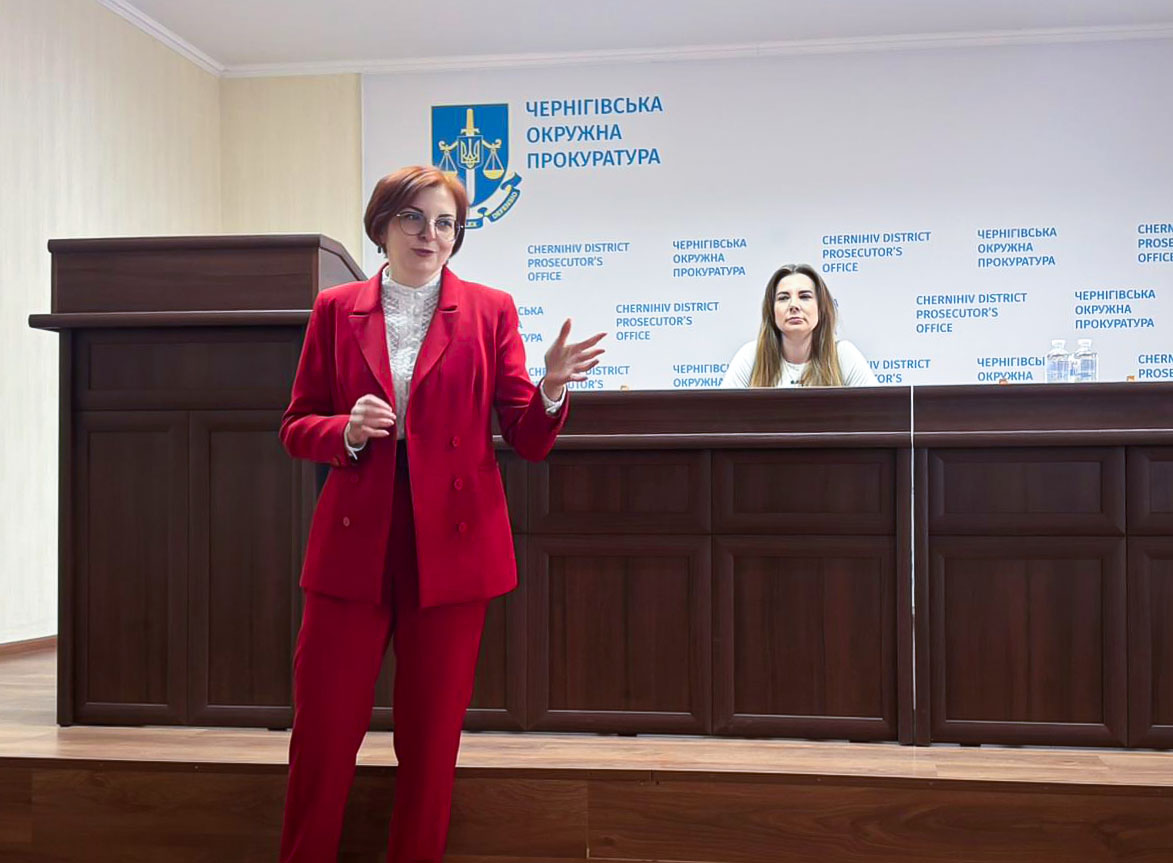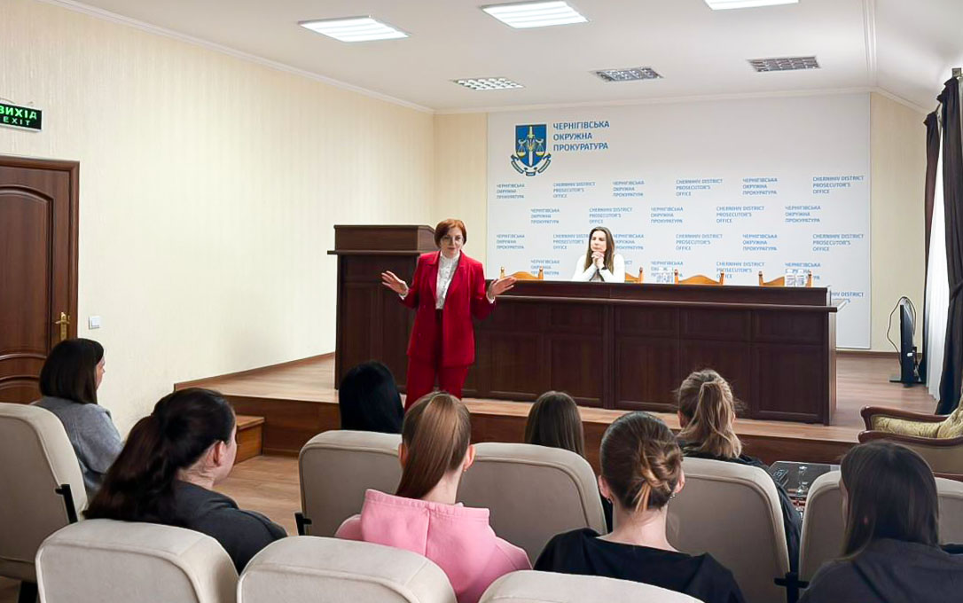 👩‍🏫 Модераторкою зустрічі стала начальниця кафедри адміністративного та конституційного права Академії, доцентка, кандидатка юридичних наук Яна Крупко. Лекцію провели прокурорки Чернігівської окружної прокуратури Юлія Донець та Дарина Сироїд, які поділилися практичним досвідом і відповіли на запитання студентів.