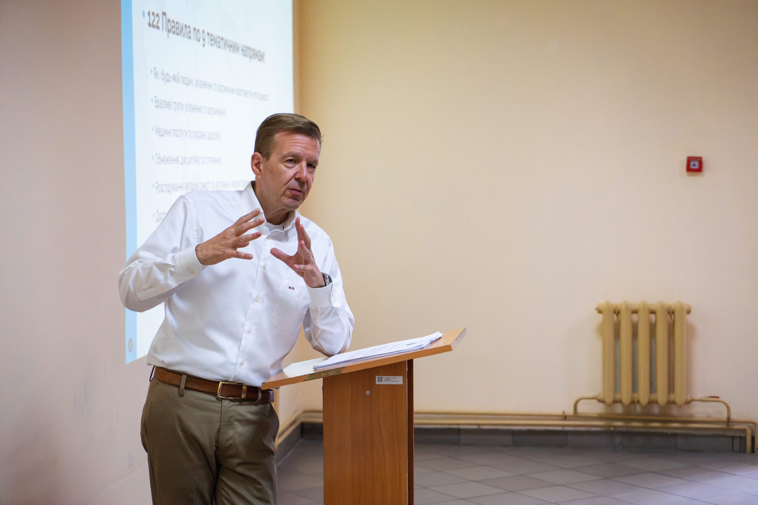Мікко Сарвела, міжнародний експерт із багаторічним управлінським досвідом у сфері пенітенціарної безпеки, виступив з двома лекціями для курсантів, викладачів та працівників Академії. Теми стосувалися міжнародних стандартів захисту прав в’язнів та динамічної безпеки в установах виконання покарань.