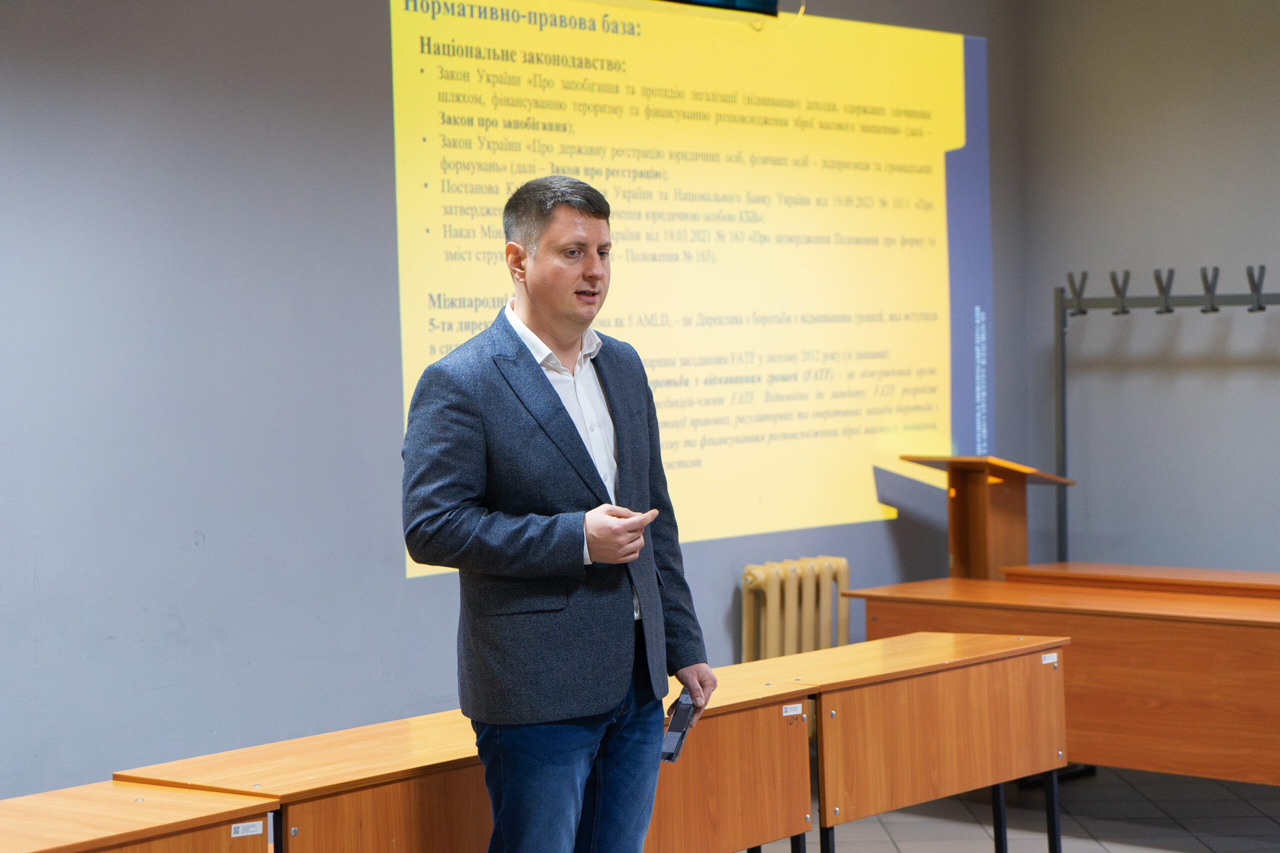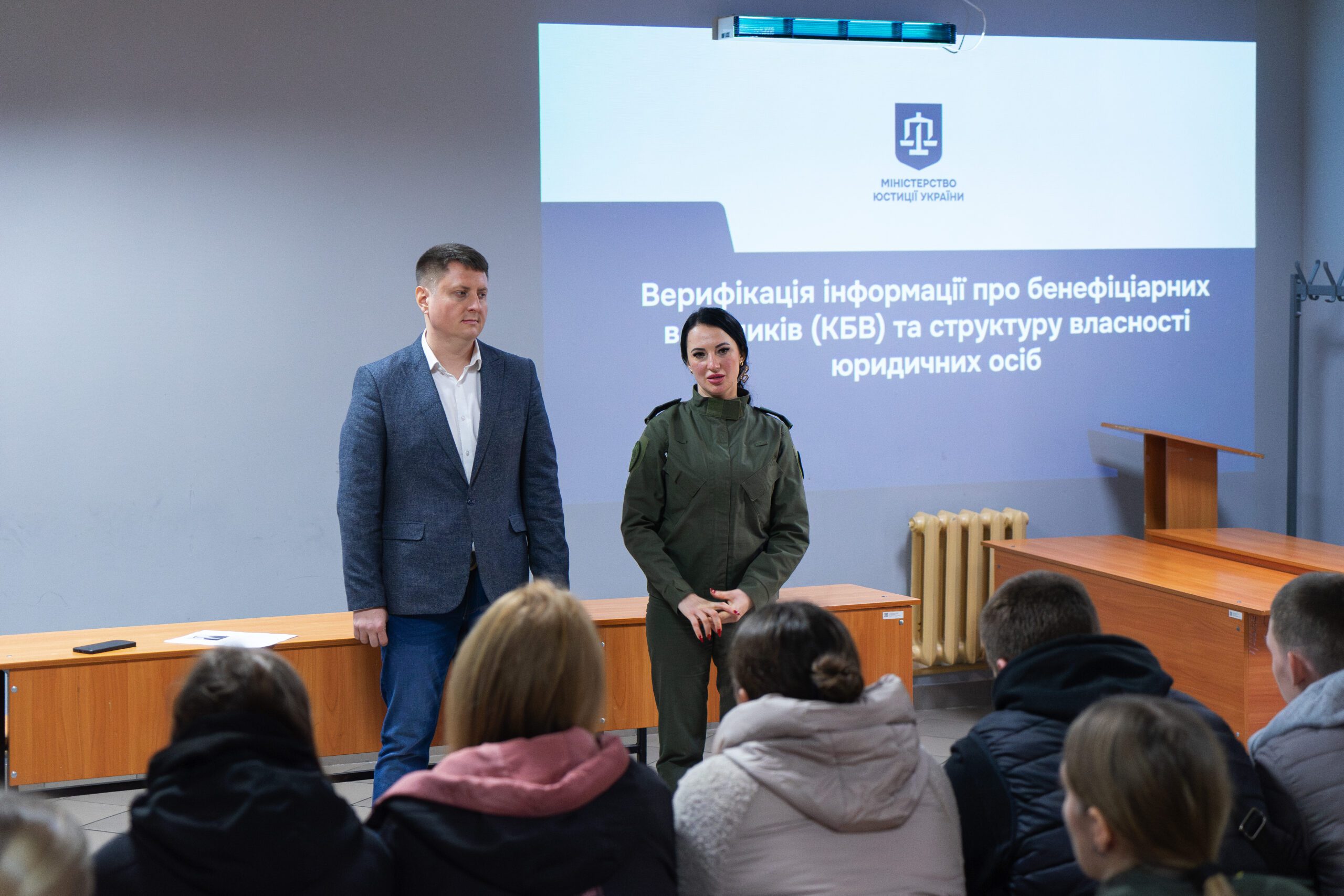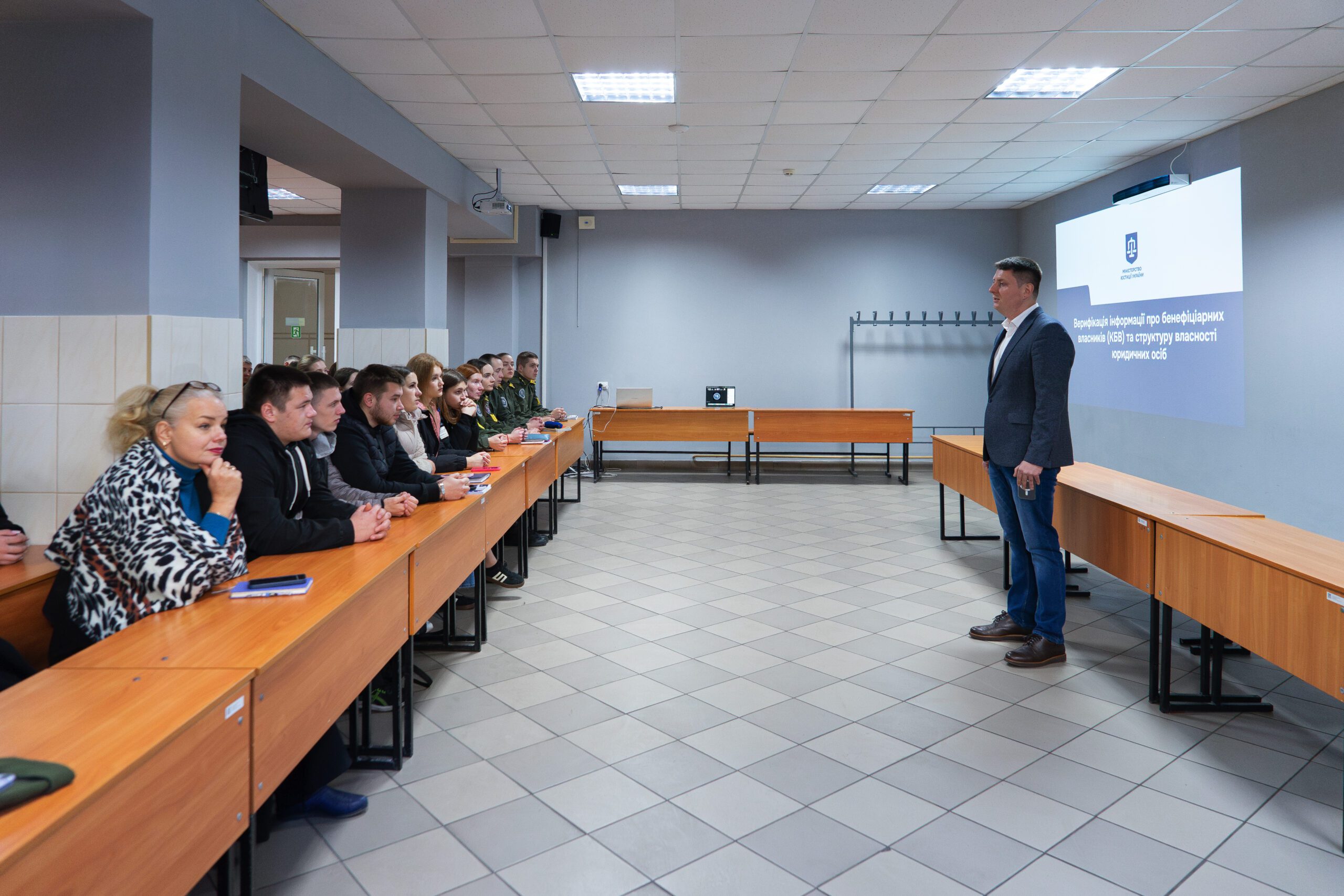 Під час лекції він поділився практичним досвідом Міністерства юстиції у сфері верифікації даних про кінцевих бенефіціарних власників, розкрив актуальні аспекти державної політики щодо забезпечення прозорості бізнесу та вдосконалення механізмів перевірки достовірності інформації про юридичних осіб.